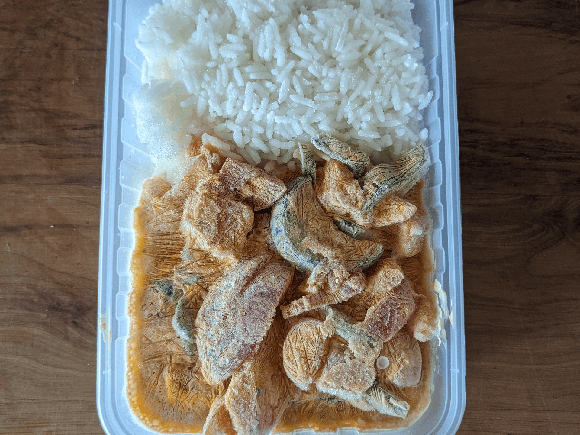 A spicy Thai red coconut sauce with tender Mushrooms, vegetables, fresh coriander, chilli & lime served with steamed jasmine rice. *FROZEN* As always ~ Gluten Free
