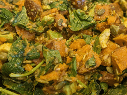 Fragrantly spiced sweet potato pieces roasted until tender tossed with fresh diced avocado, & baby spinach with a lemon vinaigrette. This one requires some assembly. We'll have everything cut, cooked, & packaged. The avocado will be in the olive oil for the dressing, keeping it fresh & green. The lemon & herbs from the vinaigrette will be separate and will combine nicely when you're ready to eat. As always ~ Gluten Free