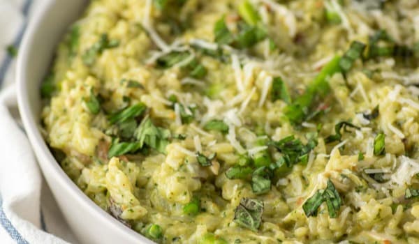 Chicken Breast, Arborio Rice, White Wine, Baby Spinach, Stock (Vegan, LoFo), Basil Pesto (Milk, Pine nut), Parmesan Cheese (Milk), Garlic, Salt, Black pepper, Spices