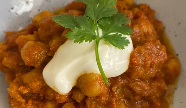 Welcome this vegetarian warmer on to your weekly dinner table! Chickpeas are slow cooked with onions, garlic, turmeric, ginger, garam masala, chilli, coriander, tomatoes and more to create a sensational plant-based feast. I love the pop of subtle flavour that chick peas have and when paired with a combination of warming spices, the end result is always balanced and delicious. I would serve this with a dash of yoghurt, fresh coriander and crunchy pappadums. Enjoy!