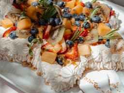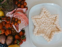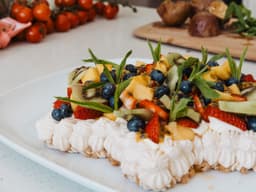 We have created a beautiful pavlova in the shape of a star for you to decorate with whatever your heart desires. A wonderful opportunity to let the kids help out or simply smother with the following ideas; Cream, fresh cherries, fresh mint and passionfruit Cream, mango, passionfruit, banana, passionfruit Cream, chocolate nibs, praline and warm toffee Cream, strawberries, kiwi fruit, blueberries, mint, passionfruit Go wild!