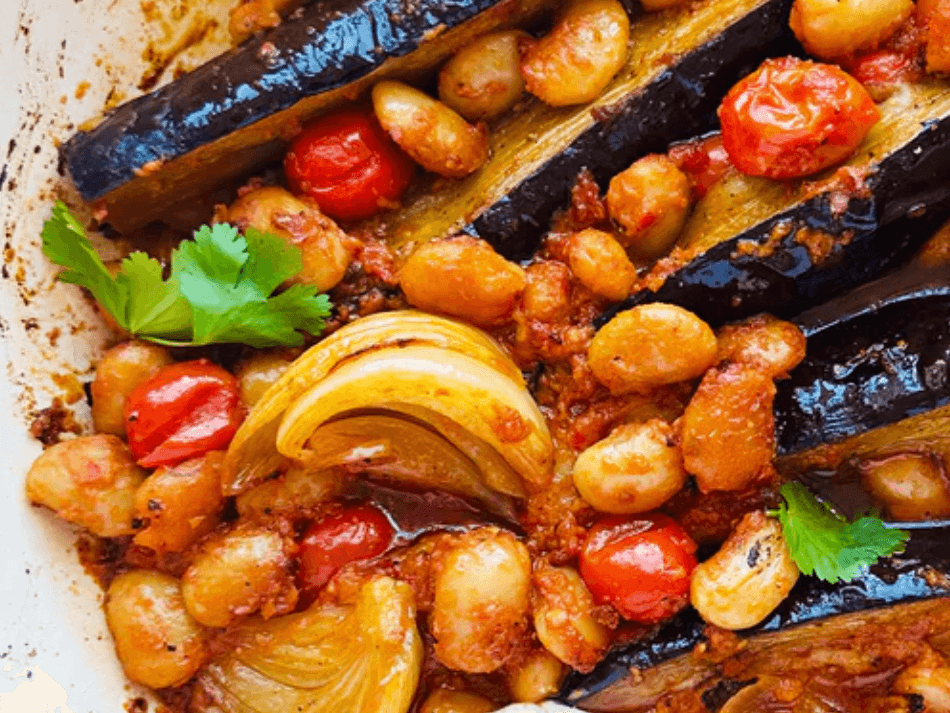 Another Ottolenghi recipe that we have taken and twisted to suit what we have in our pantry this week. Eggplant is cooked with butter beans, kidney beans and chick peas to which we add a little chilli pesto. This is a wonderful vegetarian option or side dish.