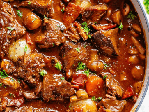 Without a doubt this is an all time French classic. It is so delicious your family will be begging to make it a weekly occurrence. I source West Australian beef and slow cook it in a warm oven with pancetta, onions, carrots, mushrooms, herbs and of course lots of red wine. This takes about 4 hours and it comes out of the oven smelling heavenly. More importantly it really delivers on flavour. Serve with C Si Bon Potato Gratin or pappardelle pasta, rice or mashed potatoes and green veggies or salad. So delicious you will want to lick your plate!