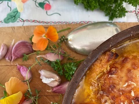 Thinly sliced Royal Blue potatoes, layered with garlic and cream, topped with cheese and baked in the oven until golden brown. This is my ultimate side dish. It’s versatile and tastes delicious when paired with chicken, seafood, beef, lamb, salad, vegetables or just gobbled up by itself. I find the waxy style of Royal Blue Potatoes can hold their flavour well when partnered with fresh, local cream and garlic. Topped with lashings of cheese and baked until golden brown. Try this with my C Si Bon Boeuf Bourguignon, C Si Bon Stuffed Chicken Thighs or C Si Bon Chicken Chasseur and sides of green vegetables or salad. You will love it so much you will be able to serve it to guests the next time they come for lunch or dinner. Nobody needs to know!!