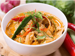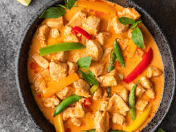 A silky red curry that has a creamy thick coconut sauce, it's packed with flavours lemongrass, kaffir lime, galangal and chillies with a subtle hint of sweetness.