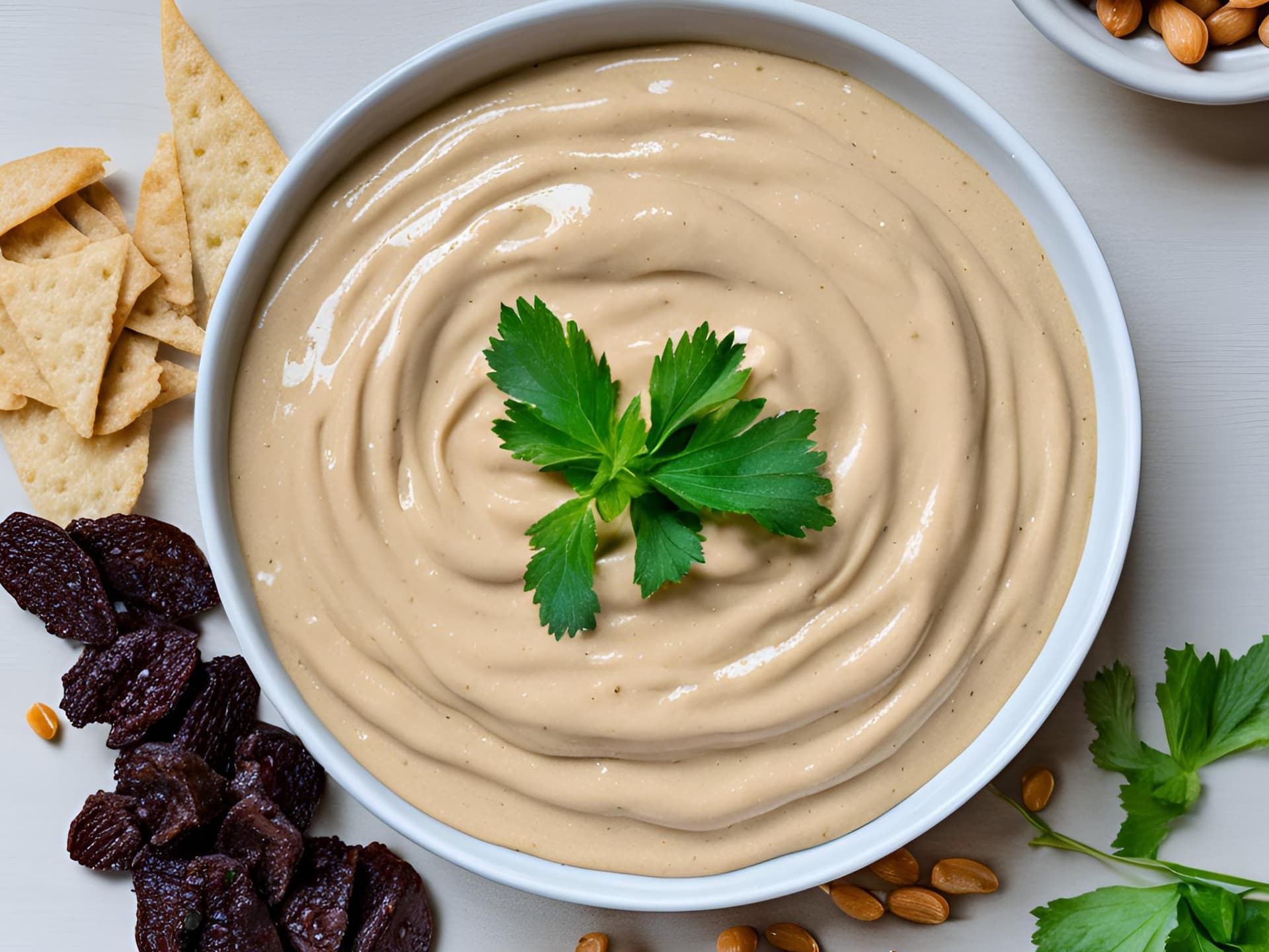 Creamy ground sesame paste blended with lemon and parsley, perfect for dipping or spreading