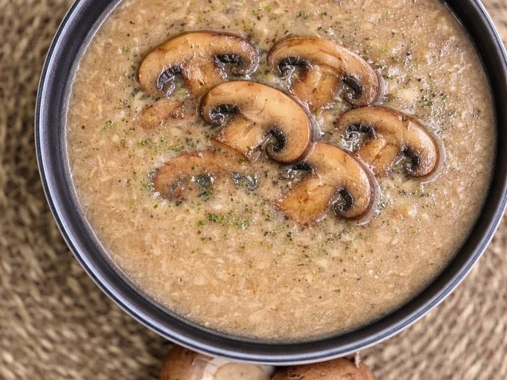 A smooth, comforting soup made from mushrooms and finished with cream.