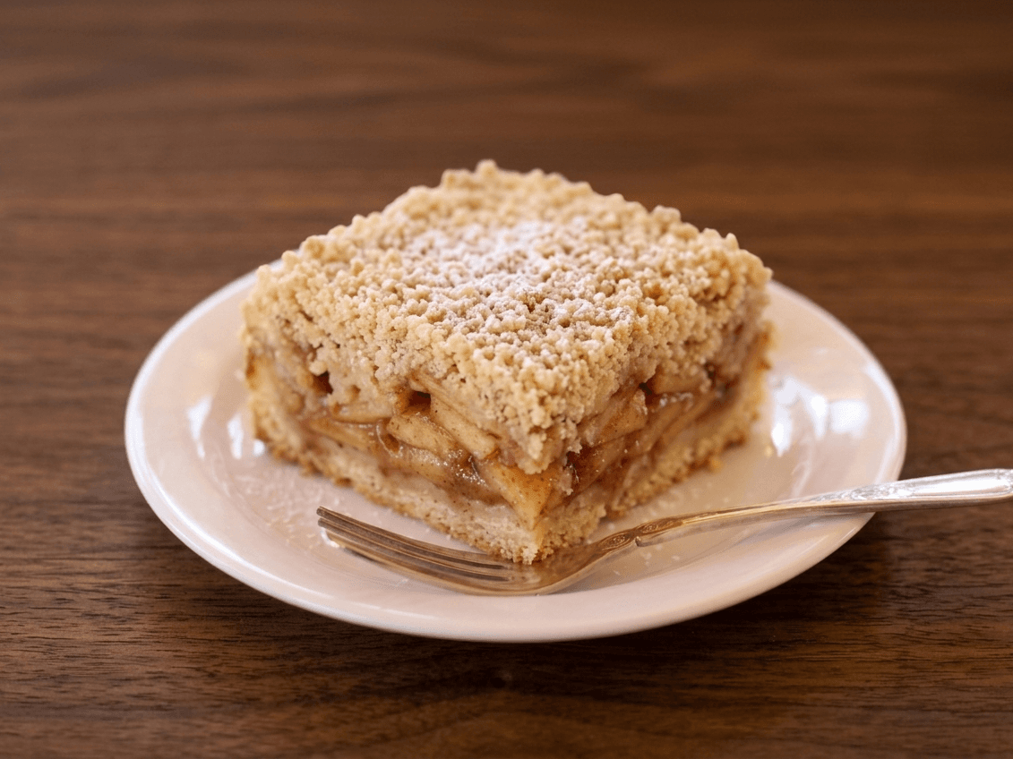 Diced apples paired with aromatic cinnamon and crunchy coconut, all drizzled with creamy custard.