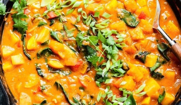 A rich, mild Thai curry spiced with ginger, turmeric, lemongrass, cumin, cardomom and nutmeg - rounded out beautifully by the sweetness of the pumpkin.