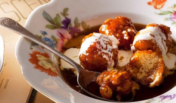 An old fashioned favourite - scone style dumplings that are light, fluffy and perfect for soaking up the golden syrup sauce...served with a side of cream.