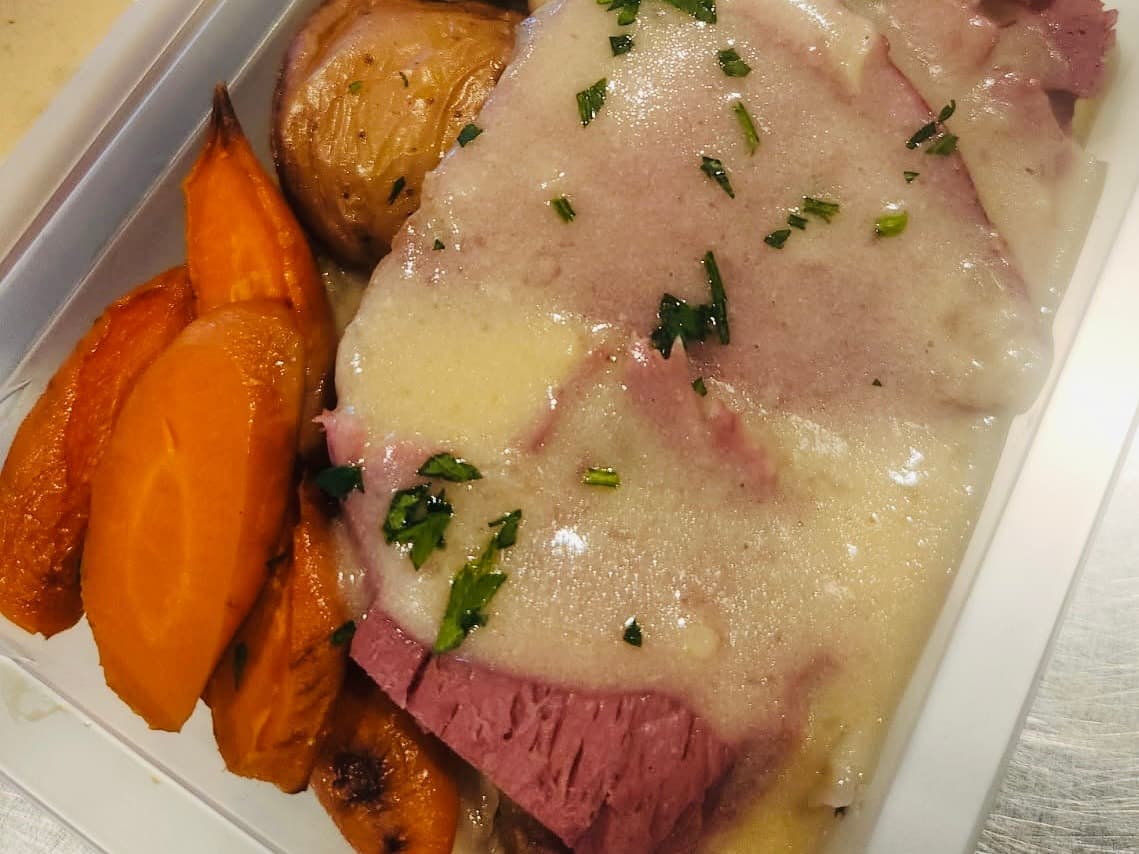 This dish screams homestyle comfort with a flair from its Louisiana influence - sauce with worcestershire, cream, thyme and mustard...