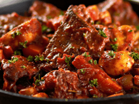 Home style casserole with lamb forequarter chops, red wine, mushrooms and fresh herbs.