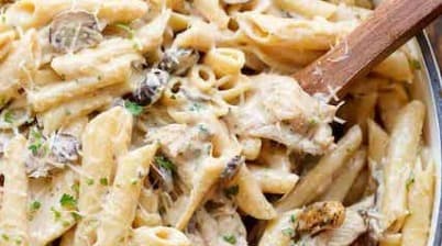 A family favourite! An Aussie carbonara with double smoked bacon, garlic, mushrooms, cream and parmesan served with penne pasta.