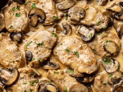 This is the ultimate cosy dinner, with melt-in-your-mouth mustardy sauce, tender pork scallopinis and creamy garlic mushrooms...