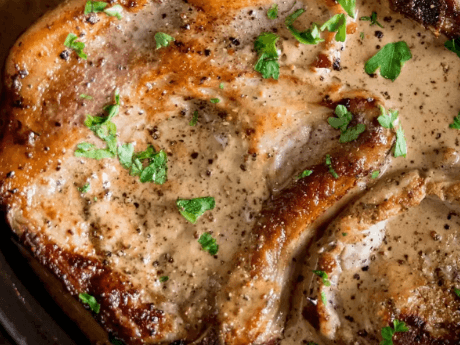 This is the ultimate cosy dinner, with melt-in-your-mouth mustardy sauce, tender pork loin chops and creamy mustard garlic mushrooms...