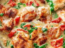 Eat with rice, mashed potato, pasta or just dip some crusty bread into these creamy Italian chicken thigh cutlets and drumsticks. Add some chilli at home for an arrabiata twist!