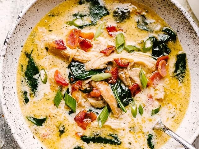 A team favourite! Creamy soup with bacon, chicken, cheese, spinach, and ranch seasoning - an American spin on a classic soup!