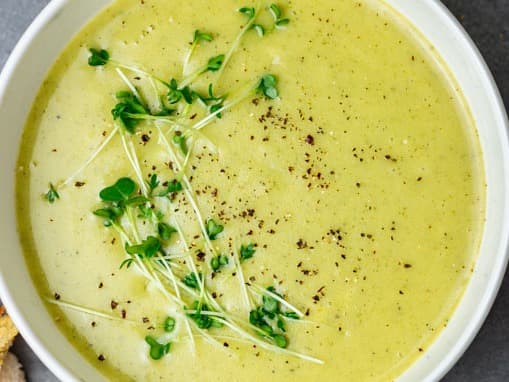 Putting a spin on an old favourite soup with mild Thai spices and crunchy toasted coconut on top.