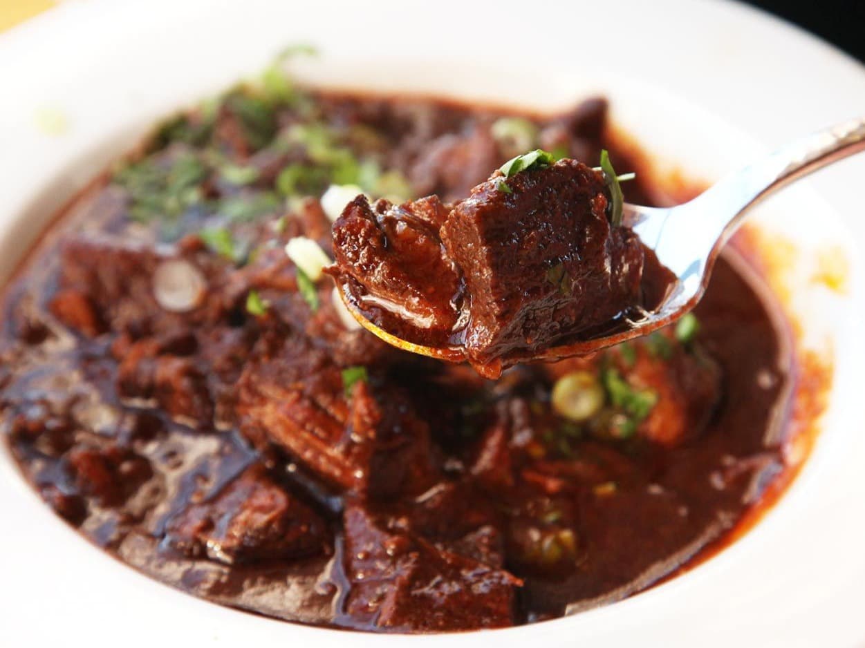 Kare kare is a rich, peanut-buttery braised beef stew that has tender, fall-apart meat and vegetables like eggplant and snake beans.