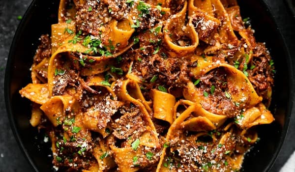 This Slowly Braised Short Rib Ragu is the ultimate, decadent, Italian comfort food! Beef short ribs slowly braised until fall-apart tender with simple vegetables, fresh herbs, tomatoes, & red wine, creating a hearty & boldly flavoured homemade ragu sauce.