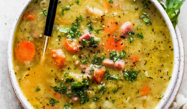A classic and a hearty, nourishing soup with smoked ham hock, split peas and tons of vegetables.