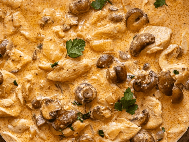 Stroganoff is a perennial favorite, and something I crave to this day. It isn't too fancy, but there's something about the way the intensely savoury flavors of the mushrooms, onions and chicken melded with the rich and slightly tangy sour cream make it irresistibly appealing. Yes, we know, it's usually made with beef. But what if we fancied it up with chicken? Yessssss.
