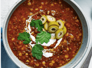Popular in the Middle East, this Moroccan soup is traditionally eaten in the evenings during Ramadan to break the fast. Dollop a bit of yoghurt on the top to finish it off at home!