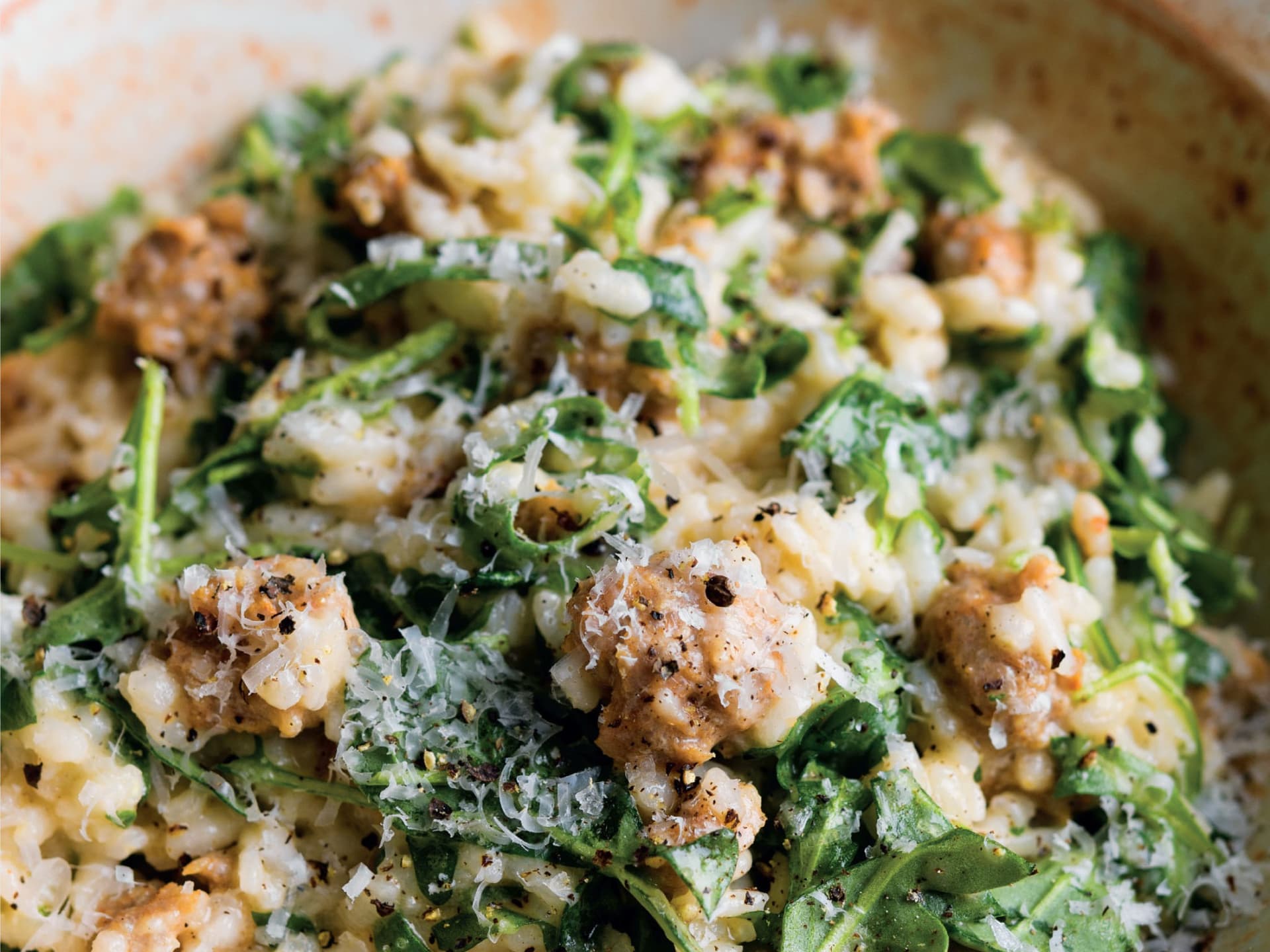 Risotto packed full of flavour from the pork and fennel sausage, dry white wine, basil, spinach, grilled zucchini and tons of parmesan at the end...comfort in a bowl!