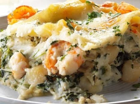 A spin on the traditional lasagne! Layers of delicious prawns in a tomato based ragu, creamy bechamel mushrooms with spinach and mozzarella on top.