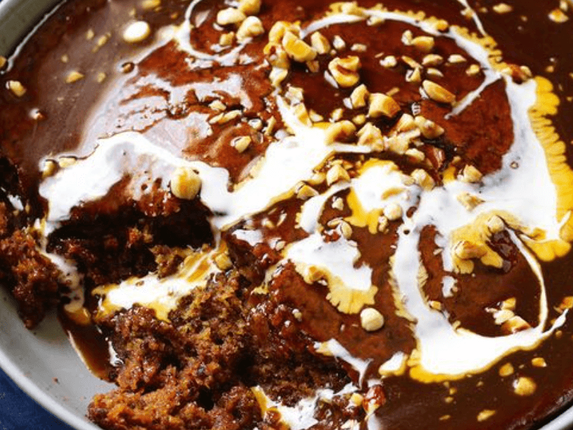 This banana and date pudding is elevated by the ultimate combination of hazelnut and butterscotch.