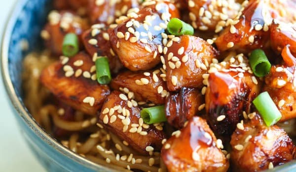 A healthy Japanese stir fry with chicken thighs, vegetables and home made teriyaki sauce.
