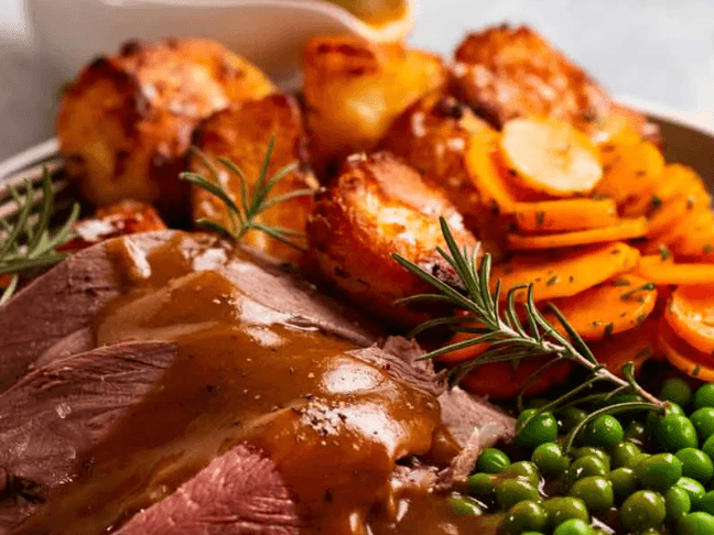 A meal in one! Roast lamb, golden roast rosemary potatoes, roast veg and let's not forget the delicious home made gravy...