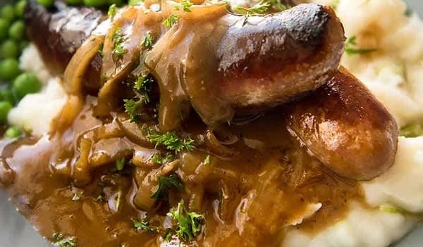 The best beef sausages from our favourite local butcher, onion gravy and creamy mash...add some steamed veggies and it's a great old time favourite!