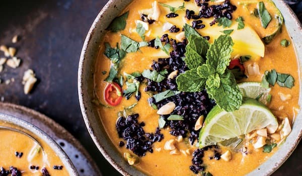Thai inspired satay pumpkin soup with lime, ginger, black rice, coconut and peanuts...a little bit different and oh sooooo delicious....!