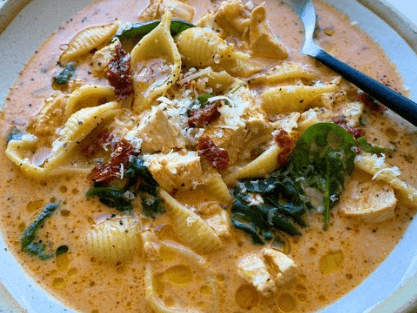 Tender chicken breasts are served up in a creamy sun-dried tomato sauce and topped with parmesan and basil. It’s the kind of dish that’s perfect for a lighter dinner!