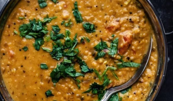 A hearty Indian dish of spiced red lentils simmered to a luxuriant stew, perfect over rice or delicious just on its own. Naturally vegan and gluten-free.