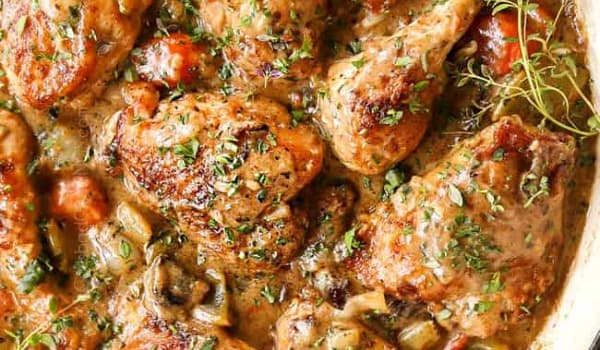 A warming delicious slow-cooked chicken casserole with tender chicken, lovely veggies and a seasoned creamy sauce. The work is done here, so you can look forward to a hearty family dinner when you get home from work. Serve it with mashed potato to soak up that delicious sauce. The king of comfort food.