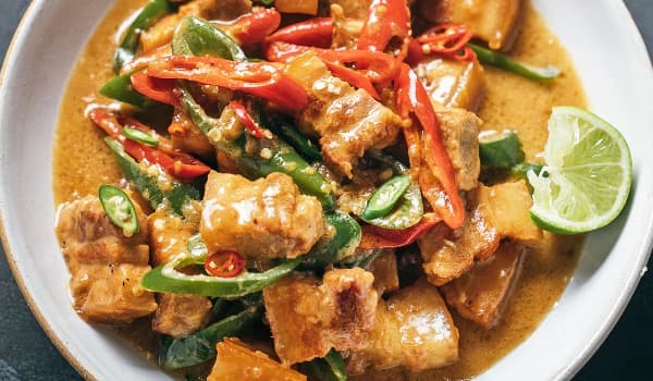 A Filipino stir fry of pork belly, coconut and chilli - The Bicol Express dish had been formally named in the 1970's after the train that is programmed to undergo the Manila-Legazpi route!