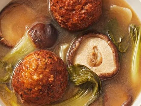 A specialty in Shanghai, Lion's Heads are large meatballs with ginger and water chestnuts, gently poached in a chicken broth for an hour with soy and shaoxing, and finished with shitake, cabbage and Asian greens - not just delicious but good for you as well!