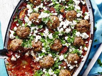 Add Greek flavours of feta, oregano and pine nuts to some humble meatballs and to allow everyone to dig in!