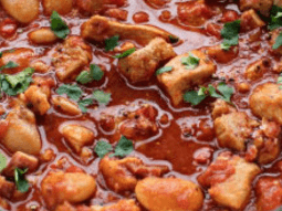 Tender pork braised with smoky bacon and paprika, finished in a rich, warming sauce with buttery beans for depth and comfort in every bite.