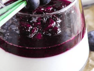 A smooth, creamy panna cotta delicately infused with lemongrass, finished with a luscious blueberry compote.