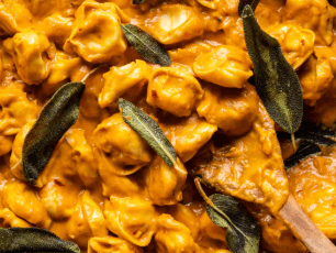 Spinach and Ricotta Ravioli tossed through a creamy roast pumpkin sauce with walnuts, sage and baby spinach.