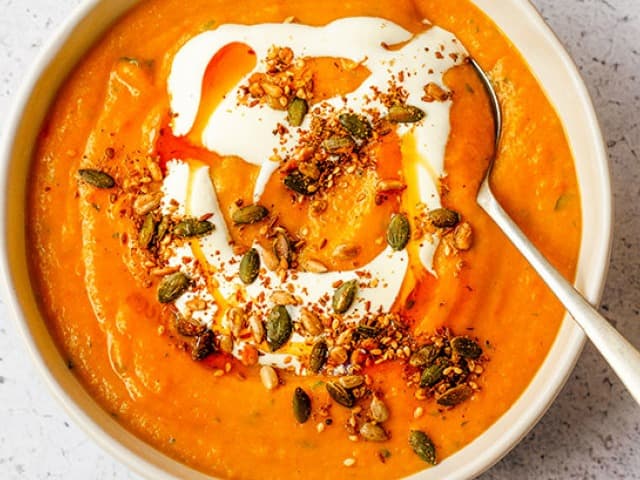 There's nothing like a warming bowl of soup to soothe the soul, and this roast carrot soup is bound to give you a hug in a bowl.