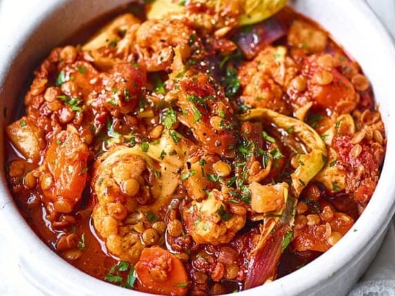 Our take on a Moroccan tagine is packed with warming spices, seasonal veg and fibre-rich lentils for a healthy, comforting meal.