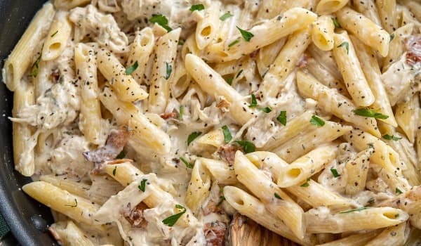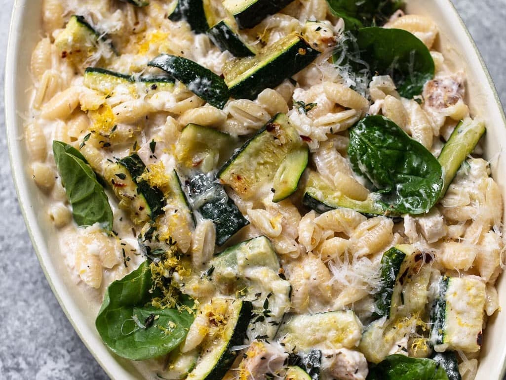 Smoked butterfish from Narooma, mixed through a white wine, cream, and lemon sauce with grilled zucchini.