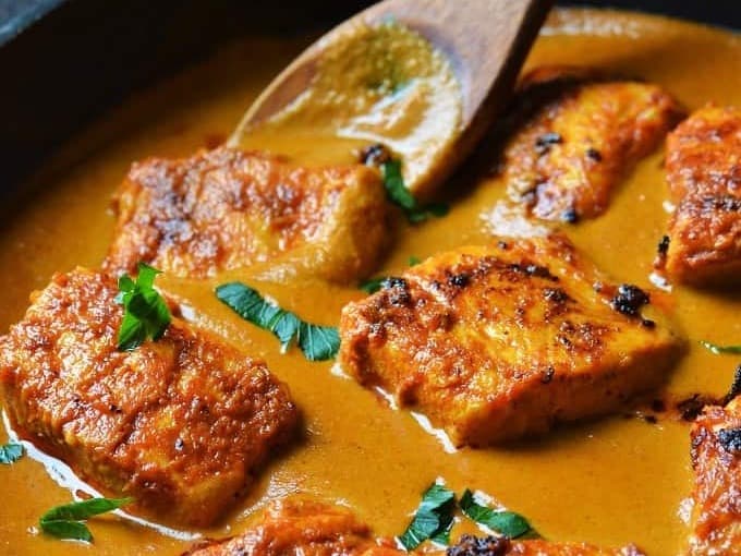Juicy pan seared salmon slow simmered in a creamy home-made tikka masala sauce is has fantastic flavour, not overwhelmingly creamy, and balanced sweetness.