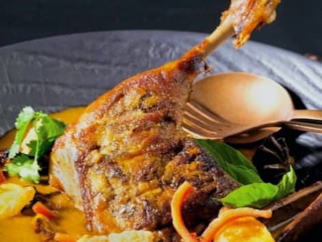 Duck maryland slowly braised overnight in our popular red curry sauce, then tossed through with fresh bok choy and herbs.