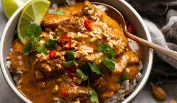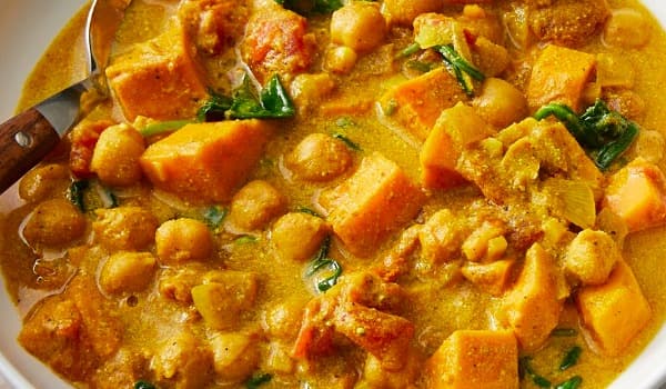Satay flavours with coconut, sweet potato and peanuts, with a squeeze of lime.
