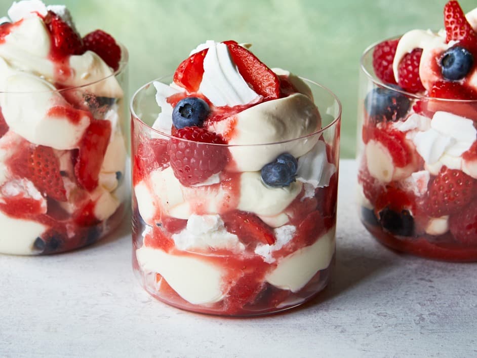A traditional English dessert from Eton College with layers of blueberries, strawberries, berry coulis, meringue, and whipped cream....if it's good enough for Prince William...it's good enough for us!